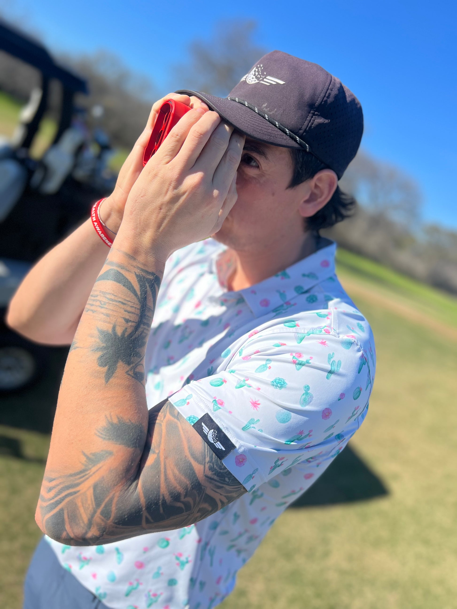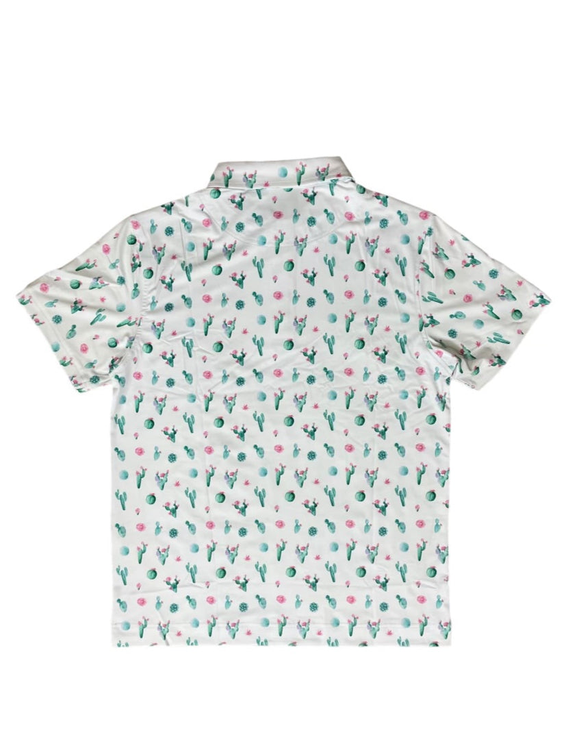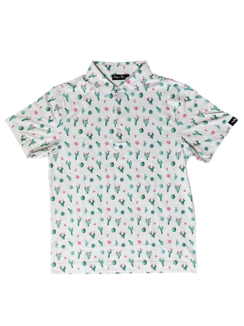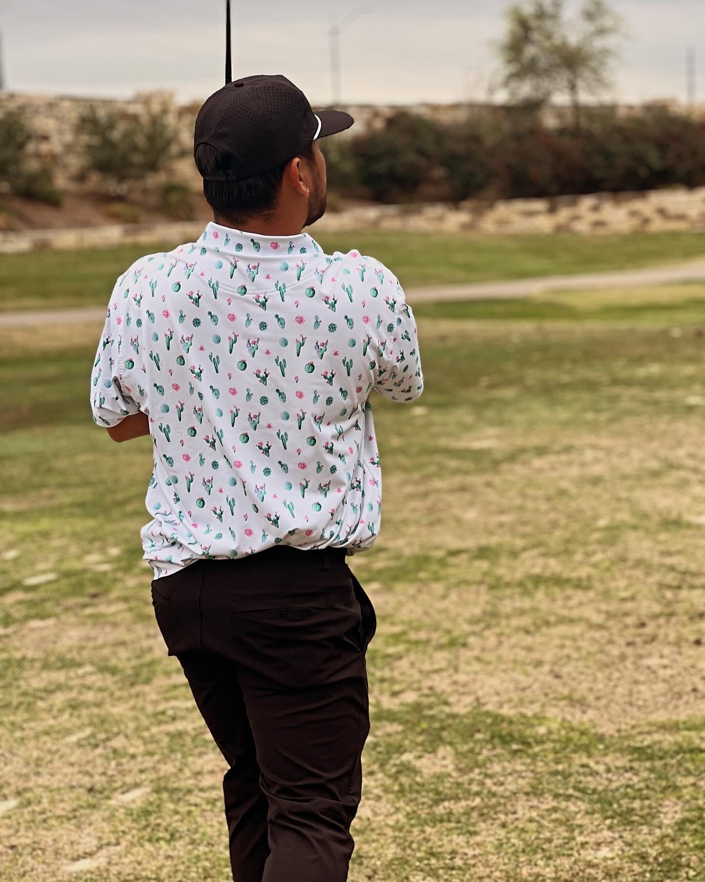 The "I’m Thorny" polo brings desert heat to the course with an all-over print of blooming cacti and blushing pink flowers. It’s playful, sharp, and unapologetically bold. Made with our signature performance fabric that stretches, breathes, and keeps you cool when you're under pressure (or in the rough).