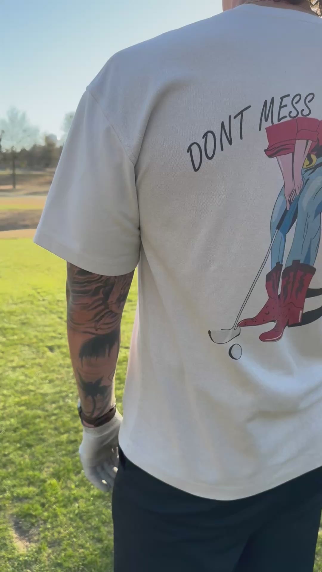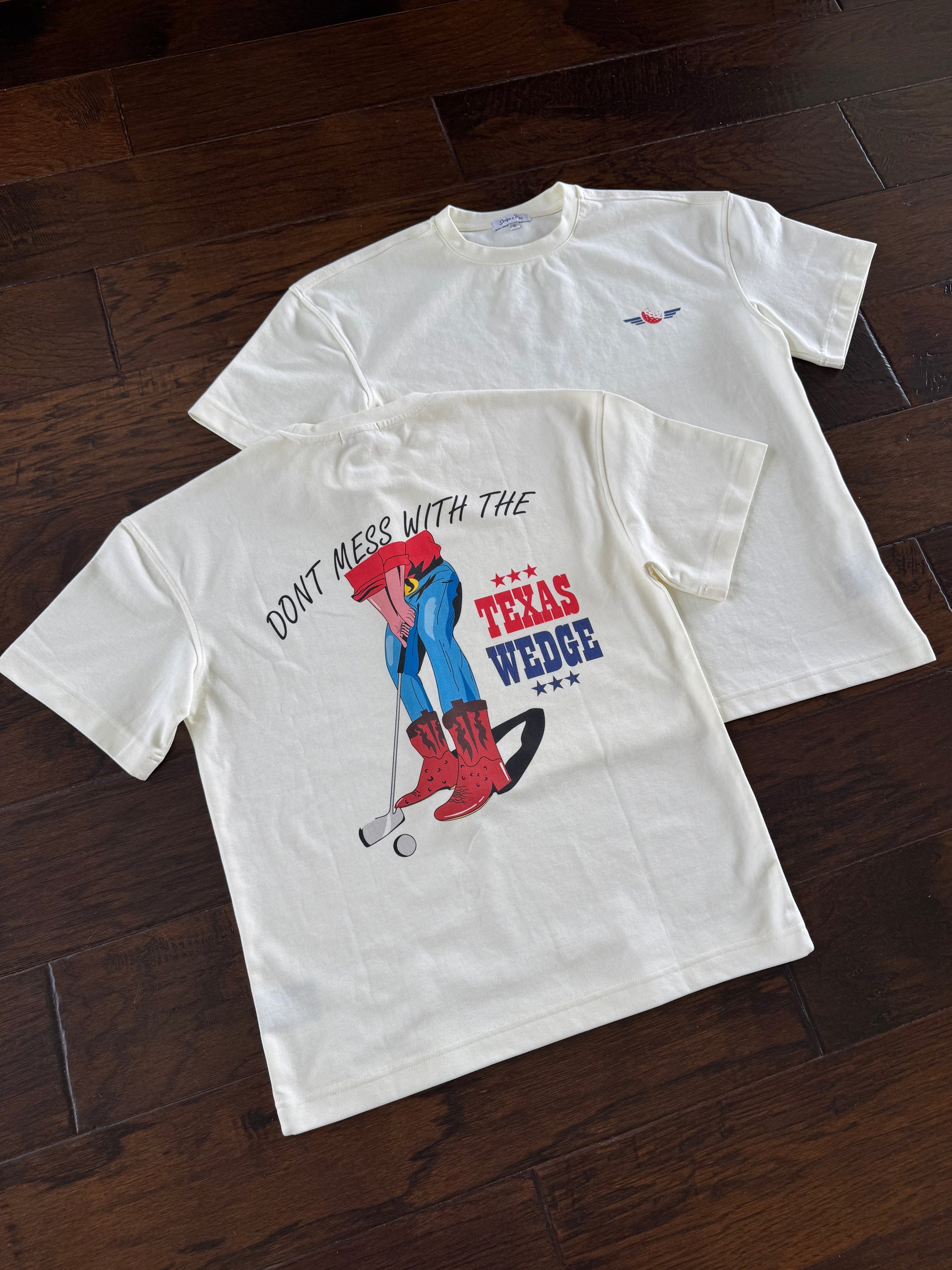 This tee brings Southern swagger straight to the green. Featuring a boot-stompin’ graphic on the back and a clean chest logo up front, the Texas Wedge Range Tee is made for those who know the power of the putter. With a relaxed fit, it’s your go-to for range sessions, casual rounds, or BBQs after birdies. This tee gives pure Texas golf energy with its vintage-inspired colors and Lone Star attitude!