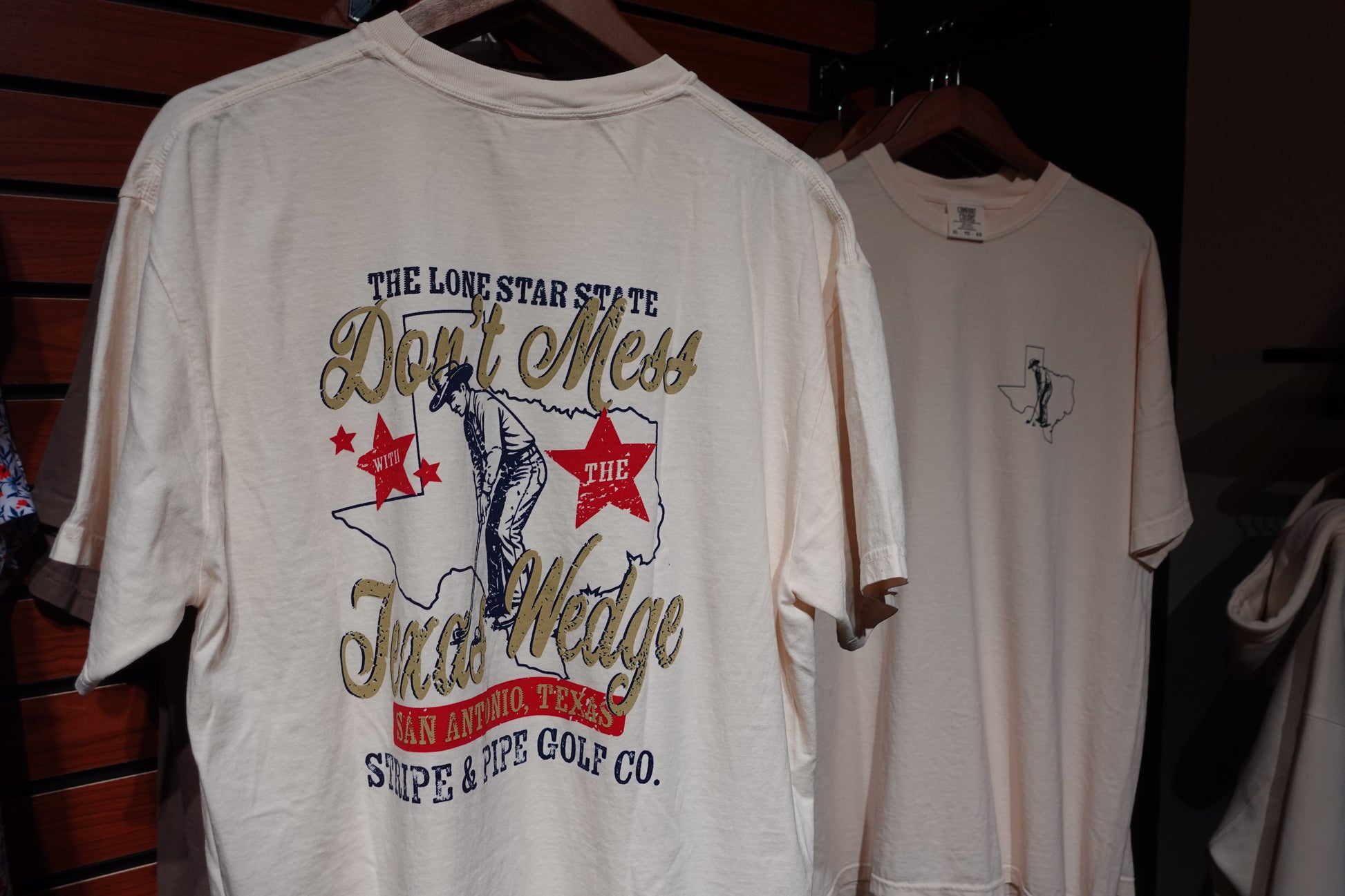 Back and better than ever, the Texas Wedge Range Tee is officially upgraded. Vintage Texas golf vibes, distressed artwork, and a clean chest hit on the front. A must-have for anyone who knows: in Texas, a putter works just fine from anywhere. Our Texas Wedge design is screen printed on a Comfort Colors T-Shirt, built for a relaxed fit and comfortability.